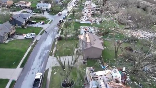 Imagens impressionantes registradas após a passagem do tornado mostram a devastação causada na região.