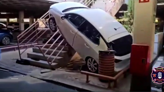 No último sábado, um veículo despencou pelas escadarias do estacionamento de um shopping center em Alcorcón, na região de Madri, Espanha.