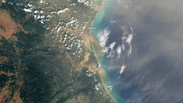 “A enorme quantidade de sedimentos levados ao Mar Mediterrâneo pelos rios da Comunidade Valenciana é claramente visível nesta imagem do satélite Copernicus Sentinel-3, capturada em 30 de outubro”, informou o órgão em comunicado.