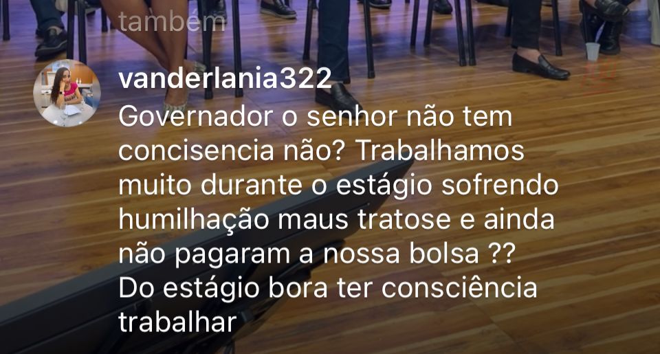 A insatisfação não se limitou aos estagiários. O atraso no pagamento de prêmios a professores também foi alvo de críticas. O comentário de @jose_batista_de_souza_neto ressaltou a frustração entre os educadores: “Governador, quando será o pagamento do prêmio Mestres da Educação?” Essa cobrança reforça a percepção de que atrasos nos compromissos financeiros estão afetando diferentes setores, prejudicando estagiários, professores e beneficiários de programas sociais.
