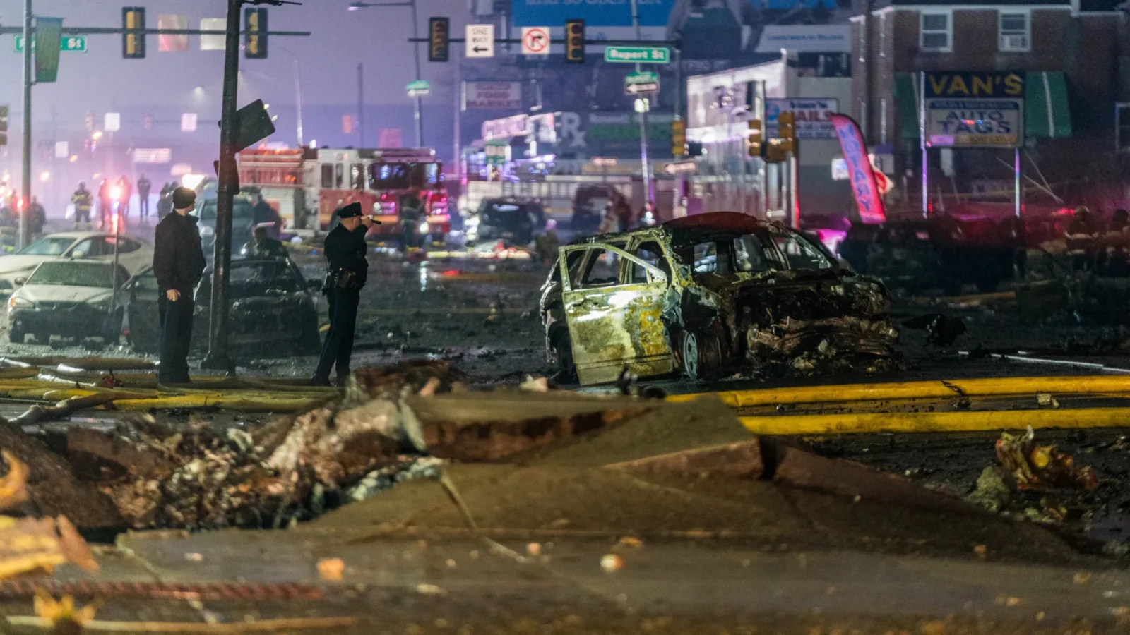 Em uma coletiva de imprensa, a prefeita da Filadélfia, Cherelle Parker, disse que várias casas e veículos foram danificados, mas acrescentou que ainda não havia confirmação sobre vítimas fatais.