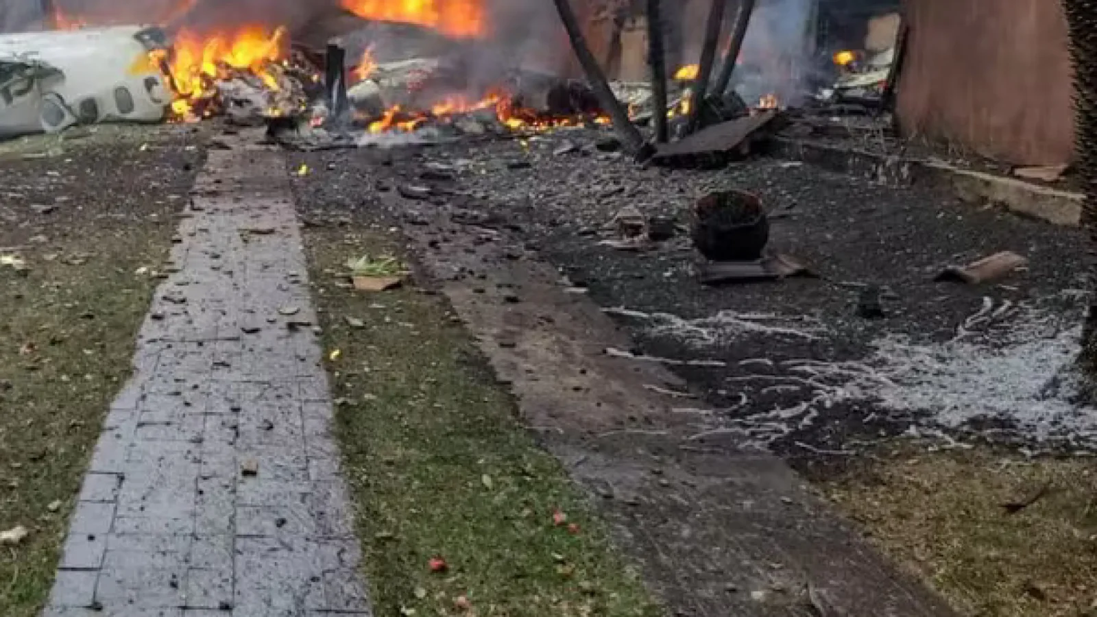 Segundo a polícia, duas pessoas estavam a bordo do avião, e há feridos no solo, com o fogo se espalhando rapidamente para uma série de casas na região. Socorristas já trabalham no local.