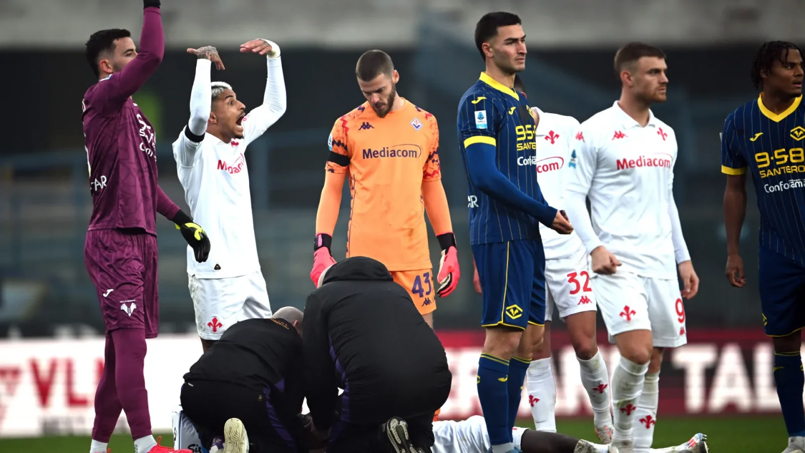 O jogo entre Hellas Verona e Fiorentina, neste domingo, foi marcado por um momento de tensão após Moise Kean desmaiar em campo. O atacante, que pertence à Juventus e está emprestado à Fiorentina, colapsou após sofrer uma joelhada na cabeça do zagueiro Dawidowicz. Imediatamente, os jogadores ao redor acionaram a equipe médica.