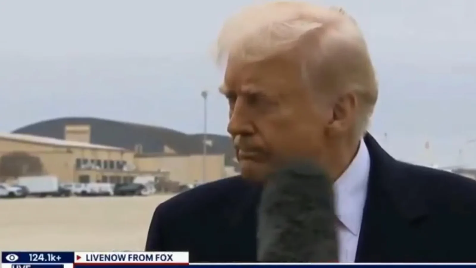 O episódio aconteceu na sexta-feira, na Base Aérea de Andrews, em Maryland. A extremidade do microfone atingiu Trump na boca, fazendo com que ele fechasse os olhos e se inclinasse para trás.