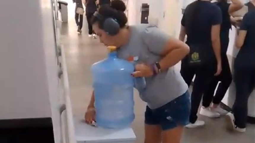 Nas imagens, é possível ver uma acompanhante limpando, por conta própria, o garrafão de água utilizado por diversos pacientes. O vídeo denuncia também a ausência de bebedouros na unidade, obrigando os acompanhantes e pacientes a virarem o próprio garrafão para encher um copo de água sendo tarefa especialmente difícil para quem está hospitalizado com limitações físicas.