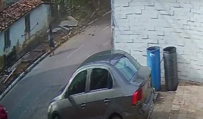 Muro desaba e quase atinge mulher em João Pessoa/PB