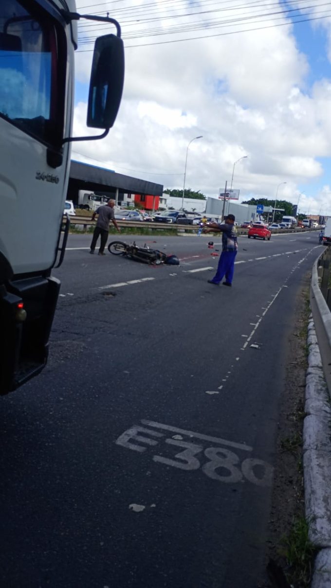 Motociclista morre esmagado por carreta em grave acidente na BR-101, em João Pessoa